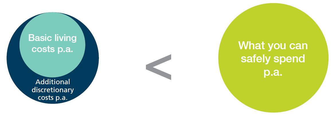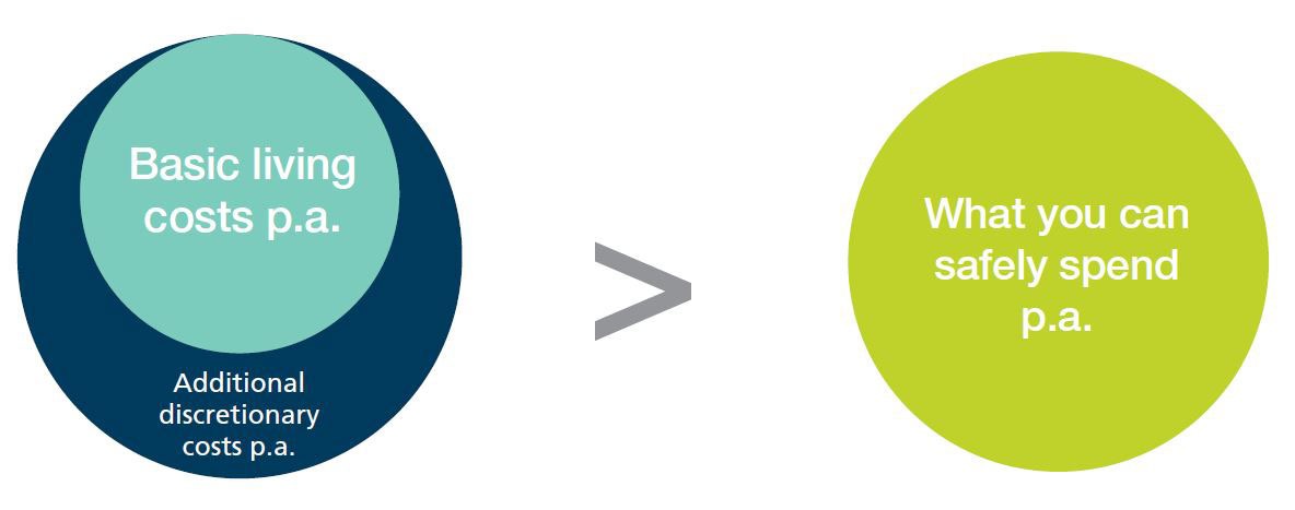 Or if your basic living and discretionary costs are more than you can afford to spend with the required level of confidence, you run the real risk of running out of savings later in life.